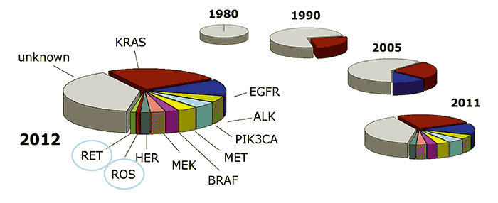 Endobronchialer Ultraschall (EBUS) zur Diagnostik von Lymphknotenvergrößerungen. Rasante Entwicklung – molekulare Diversifikation des NSCLC Über die bekannte Unterscheidung der Lungenkarzinome in kleinzellige (SCLC) und nicht-kleinzellige Lungentumoren (NSCLC) hinaus hat eine genauere Differenzierung der NSCLC in den letzten Jahren an Bedeutung gewonnen. Bis vor wenigen Jahren unterschied man zwischen dem Adenokarzinom, dem Plattenepithelkarzinom und anderen selteneren Formen, ohne daraus weitere Konsequenzen ableiten zu können. Die Behandlung war bei allen NSCLC immer die gleiche. Durch die Zunahme der auf die molekularen Mechanismen der Erkrankung gerichteten Diagnose- und Behandlungsmöglichkeiten haben sich die Therapiestrategien in der Krebstherapie in den letzten Jahren stark gewandelt. Zunehmende „molekulare Diversifikationen“ des nicht-kleinzelligen Lungenkarzinoms (NSCLC) ergeben neue Therapiemöglichkeiten durch Tyrosinkinaseinhibitoren und Antikörper. Diese Möglichkeiten verändern das Vorgehen der prädiktiven Diagnostik (Translokations-, Mutationsanalyse bzw. Nachweis von Rezeptorüberexpression) und stellen an ein Behandlungszentrum wichtige Anforderungen, wie z.B. eine logistisch ausgefeilte Diagnostik bereitzustellen, um in kurzer Zeit die optimale Stratifikation der modernen Therapie anbieten zu können. So ist absehbar, dass in naher Zukunft für 50 bis 55% der pulmonalen Adenokarzinome genetische Mutationen der Tumorzellen (definierte molekulare Alteration) nachweisbar und häufiger gezielt wirkende Medikamente verfügbar sein werden (1).