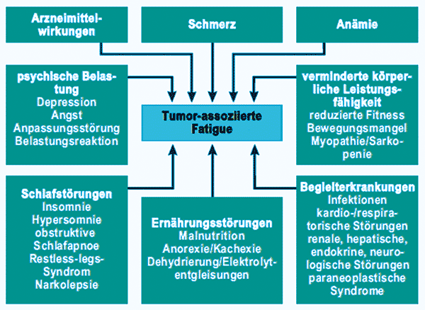 Treten diese Merkmale während einer Tumortherapie in starker Ausprägung auf, ist die Wahrscheinlichkeit groß, dass sie auch nach der Behandlung weiter bestehen. Folgende Symptome sind Risikofaktoren für ein chronisches Fatique-Syndrom: