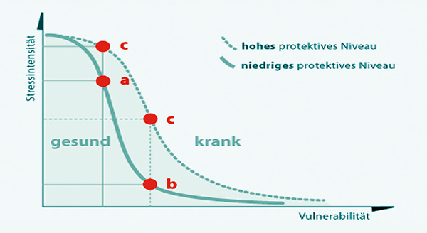 Abbildung 2: Vulnerabilitäts-Stress-Modell (nach Zubing und Spring) Die Dauer eines Fatique-Syndroms kann Wochen bis Monate anhalten und auch nach Abschluss der Therapie persistieren. Häufige Merkmale eines chronischen Fatique-Syndroms