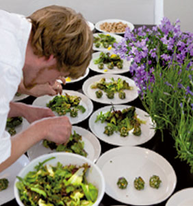 Gesunde Ernährung – ein Genuss für Leib und Seele. getestet und notiert von Dagmar Moldenhauer Liebe Leserinnen, liebe Leser, in jeder Ausgabe finden Sie an dieser Stelle eine Kolumne, die ihren Radius etwas über den „Tellerrand“ der Medizin hinaus setzt. Aufgeschreckt durch eine Studie in der „Science Daily“ (University California, San Diego, USA), die neue Ergebnisse zum Thema Ernährung veröffentlichte, scheint unsere heutige Betrachtung gerechtfertigt zu sein. Diese Studie alarmiert eindrucksvoll, dass industriell gehärtete Fette, die die Haltbarkeit von Fertig-Essen und Fast-Food im Regal verlängern, das Leben der Konsumenten, die sie in großen Mengen verzehren, einschränken. Gewarnt wird seit langem vor Übergewicht, Aggression und Herzerkrankungen. Bei der Fetthärtung wird durch Druck und Erhitzung auf bis zu 200 Grad unter Verwendung von fein verteiltem Nickel eine Fettsubstanz erzeugt, die sich in Maschinen besser verarbeiten, problemlos erwärmen und kühlen lässt. Weil Transfette Profite erhöhen, wurden in den vergangenen Jahren viele Studienergebnisse unterdrückt. Sind Sie nachdenklich geworden? Dann vielleicht hier eine Alternative. Appetit auf karamellisierten Ziegenfrischkäse auf leichter Chili-Feigenmarmelade mit Blattsalaten? Dann lassen Sie sich in die Manufaktur von Blythen einladen. Ob Kochkurs oder Blüten-Dinner – hier wird Essen zum Event! Gehobene Blütenküche mit vielen neuen Geschmackserfahrungen und Inspirationen verbindet Fleisch- und Fischgerichte mit vegetarischen Komponenten. Persönliche Nahrungsmittelbefindlichkeiten werden hier natürlich berücksichtigt. In der Manufaktur von Blythen wurde die königliche Blütenküche wiederentdeckt und kreativ weiterentwickelt.