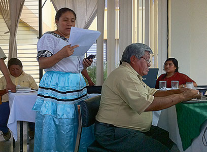 Abbildung 5: Alle fünf Maya Gruppen waren an der Fragebogenkonstruktion mitbeteiligt. Das Bild zeigt eine Vertreterin des Maya Ältestenrates der Mopan auf dem 3. Workshop, 25.-26. April 2011 in Guatemala City. Sie diktiert Don Simeon Taquira Verbesserungen zu einem Fragenblock, welche das Team der Mopans erarbeitet hat. Prof. Scholz war in der gesamten Diskussion durch Simultanübersetzung einbezogen. Zum einen wird medizinisches oder religiöses Wissen „gefiltert“ kommuniziert. Was kommuniziert wird, hängt mit der Hierarchiestufe zusammen, welche der Interviewer in der Maya Hierarchie besitzt. Um „ungefilterte“ Informationen zu bekommen, muss somit der Interviewer ein ajq’ij und/oder ein Heiler sein. Ein Student oder westlicher Wissenschaftler als Interviewer würde keine sinnvollen Ergebnisse erzielen. Zum zweiten bedarf es einer Vertrauens- und Bündnisbildung, welche mit einer ein (heiliges) Feuer beinhaltenden Zeremonie, hergestellt werden kann. Zum dritten findet sich das zyklische Weltbild auch in den Diskursen der Mayas wieder. Diskurse und Reden behandeln ein Thema wiederholt in zyklischer Form. So ist es unmöglich, 130 linear angeordnete Fragen in einem Zug zu beantworten. Eine zeitliche straffe Planung lässt sich somit kaum realisieren. Bei der Auswahl der Heiler wurde keine Zufallsauswahl vorgenommen, sondern vereinbart, dass jeder Council der fünf Maya Gruppen möglichst gute, als Maya Heiler bekannte Personen interviewt. Wie erste publizierte Analysen[26] zeigen, liegen sowohl bei der Auswahl als auch bei der Durchführung der Interviews deutliche Unterschiede zwischen den Maya Gruppen vor. Aus statistischer Sicht lassen sie sich vermutlich in dem Sinne als ein methodisches Artefakt bezeichnen, indem sie sich durch Unterschiede zwischen den Interviewenden und der Durchführung und nicht durch Unterschiede zwischen den Gruppen begründen. Es handelt sich aber bei der Untersuchung schlussendlich um eine qualitative Forschung. Statistische Zahlen dienen nur zur groben Beschreibung der Interviews und Interviewten. Eine wissenschaftliche Auswertung hat hier mit inhaltsanalytischen Methoden zu erfolgen, wobei zu überlegen ist, in welchem Maße partizipative Forschung zur Anwendung kommen muss, d.h. eine Interpretation der Texte nur unter Einbezug der Mayas möglich ist. Erste Ergebnisse und Einsichten Transdisziplinäre Prozesse müssen Voraussetzungen erfüllen (I) Starke Interessen an Zusammenarbeit: beide Seiten äusserten starkes Interesse an einer Zusammenarbeit und haben dieses mehrfach explizit und in voller Offenheit kommuniziert. (II) Gleiche Augenhöhe, Akzeptanz der Andersartigkeit des Anderen und Empathie: Beide Seiten sind sich auf gleicher Augenhöhe, mit vollem Respekt und Wertschätzung der Andersartigkeit, begegnet und haben versucht, sich in das andere kulturelle System einzudenken. (III) Glaubwürdige Ko-Leitung: Auf Grund der leidvollen Geschichte der Mayas mit der westlichen Kultur ist davon auszugehen, dass Misstrauen und Angst, ausgenutzt zu werden, eine zentrale Barriere der Zusammenarbeit mit westlichen Medizinern und Wissenschaftlern darstellt. Eine glaubwürdige, formale und reale Ko-Leitung, in der gesichert ist, dass beide Seiten nicht nur über die Ziele und Projektplanung entscheiden können, sondern auch bei Verwendung von Ressourcen und Daten gleichberechtigt mitsprechen können, ist hier als ideale Voraussetzung für einen erfolgreichen transdisziplinären Prozess zu betrachten. (IV) Ein interkultureller Moderator: Das zentrale Ziel eines interkulturellen transdisziplinären Prozesses ist es, ein Verständnis des Weltbildes, der Werte, der Kausalbegründungen etc. von der anderen Kultur zu bekommen, oder in der Wissenschaftssprache ausgedrückt, sich der „Denkweise und Beschaffenheit“ (dem „Emics“) der anderen Kultur zu nähern. Der Umstand, dass mit Frau Berger-Gonzalez jemand an zentraler Stelle der Projektleitung mitwirkte, der beide kulturellen Systeme inkorporierte, erlaubte beiden Seiten eine Rekonstruktion der Absichten, Interessen. Prioritäten, Empfindsamkeiten, Voraussetzungen etc., unter denen eine Kollaboration bzw. Zugang zu der Kultur des Anderen möglich ist. Man kann hier vielleicht von einem interkulturellen Moderator sprechen, der in dem Projekt als Scharnier zwischen den beiden Wissenssystemen wirkte. Von Vorteil für die Bereitschaft der Mayas an dem Projekt mitzuwirken, war sicher auch, dass der Autor nicht einer stigmatisierten Gruppe, wie der guatemaltekischen Herrschaftsschicht oder dem, was als „Gringo“ bezeichnet wird, zugeordnet wurde. Auswirkungen des Projekts auf das guatemaltekische Gesundheitswesen Von Seiten der Direktoren des INCAN (siehe Abbildung 6) wurde berichtet, dass – obwohl rund die Hälfte aller Patienten Mayas sind – die Ärzte größte Schwierigkeiten in der Kommunikation mit diesen Patienten haben. Diese seien nicht nur durch die Sprachbarriere bedingt (keiner der ärztlichen INCAN Mitarbeiter spricht eine der Maya Sprachen und die meisten älteren Mayas sprechen kein Spanisch), sondern es herrscht auch eine grosse Verunsicherung darüber, wie begrenzt die klassische Krebstherapie von Maya Patienten angenommen wird. Bemerkenswert an dem Kontakt mit dem INCAN war, dass alle Direktoren die Prinzipien des transdisziplinären Prozesses akzeptierten. Nach Aussage von Don Simeon war die Begegnung mit Dr. Walter Guerra und seinen Mitarbeitern die erste in der Geschichte der Mayas, in denen sie das Gefühl hatten, den Leitern einer Nationalen Einrichtung gleichberechtigt auf gleicher Augenhöhe (’authentic collaboration’) gegenüber zu stehen. Dies führte zu einer bemerkenswerten Folge von Ereignissen: Dr. Guerra wurde in den Projektbeirat aufgenommen, die Direktoren beschäftigten sich das erste Mal mit der Maya Therapie von Krankheiten und Krebs und nahmen an Maya Heilungsprozeduren teil. Es wurden Überlegungen gestartet, wie Mayas und Maya Heiler innerhalb des INCANs F