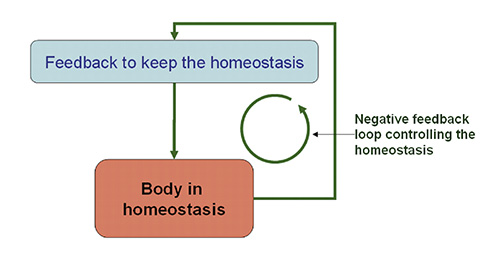 Body in homeostasis, Negative feedback, loop controlling the homeostasis. Figure 1. The natural healthy state is stabilized by the negative feedback loops of physiology.